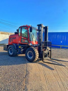 GRÚA HORQUILLA HUAYA, NUEVA, 3 TONS, 4X4, DIESEL, AÑO 2025. PLATAFORMA ELEVADORA ARTICULADA GENIE Z 45, DIESEL A 16 METROS FUNCIONANDO. CORTADORA PAVIMENTO WACKER NEUSON GS 924, FUNCIONANDO. PLACA COMPACTADORA KAMA RC 330, DIESEL, AÑO 2021, FUNCIONANDO.