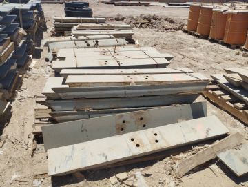 48 MEDIAS CAÑAS PARA TÚNELES, UBICADAS EN BODEGA DE MILLÁN. 20 RIELES FFCC DE 12 METROS. ENFRIADOR 5,6 X 6 METROS EN ACERO INOXIDABLE. CANTIDAD DE PLANCHUELAS, SOPORTES, PLANCHAS DESGASTE, FITTINGS, ESTRUCTURAS Y CORAZAS DE ACERO. 3 PLANCHAS ACERO DE 250 Y 750 MM. DE CHANCADORES: EJE DE CONO, CUERPO SUPERIOR 3 X 2 MTS. Y 2 CILINDROS HIDRÁULICOS. 2 GATAS HIDRÁULICAS ENERPAC 60 TONS. SOBRE CARRO, NUEVAS.